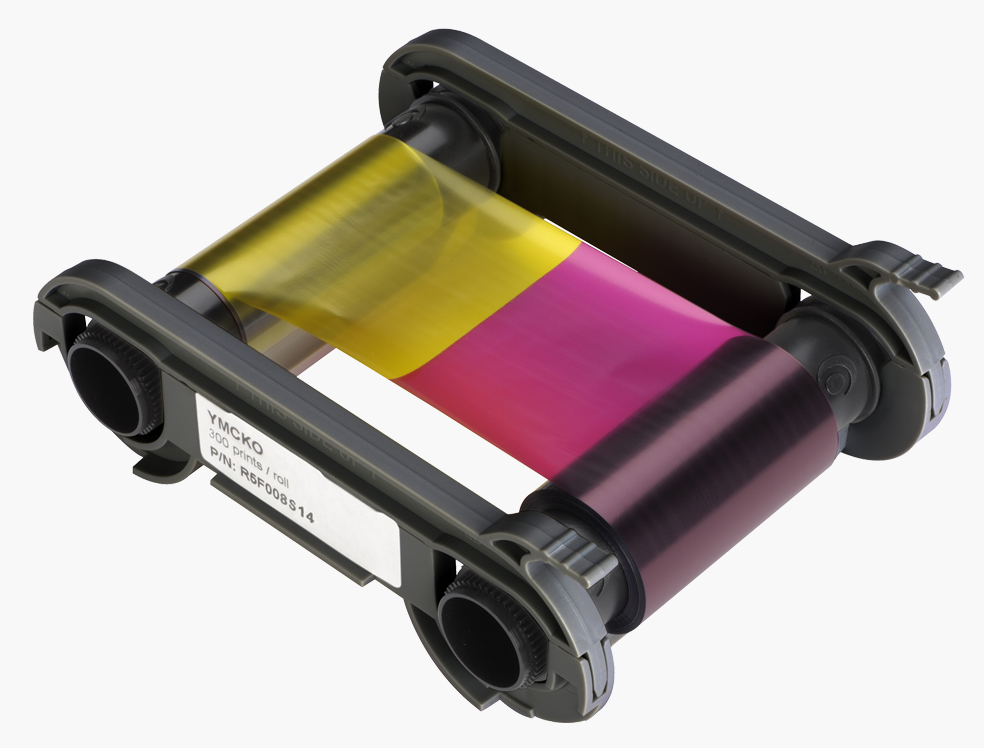 EVOLIS R5F008S14 - 300 Images YMCKO five-panel ID ribbon for single-sided full color card printing with clear protective overlay - Compatible with Evolis Primacy and Zenius.